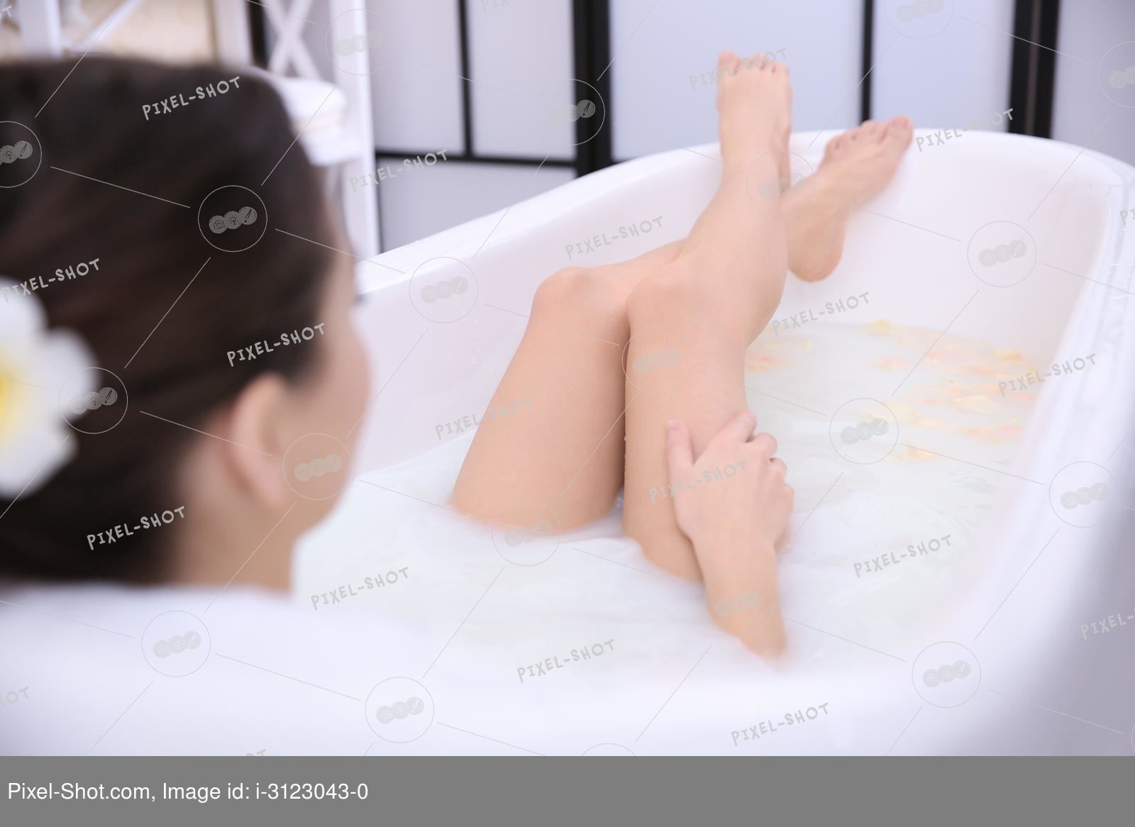 Wedding table decoration Stock Photo. sweet pretty woman lying down in bath...